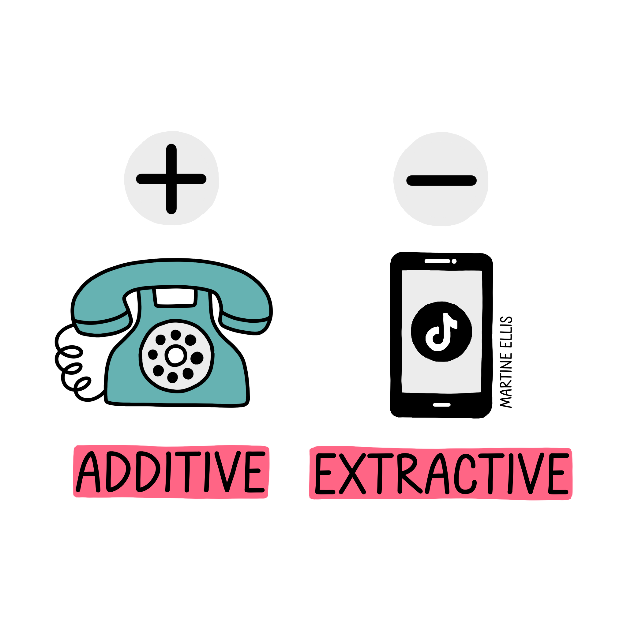 I came across some new (to me) terminology in an article from Cal Newport’s blog that I think is useful: additive and extractive technology.
